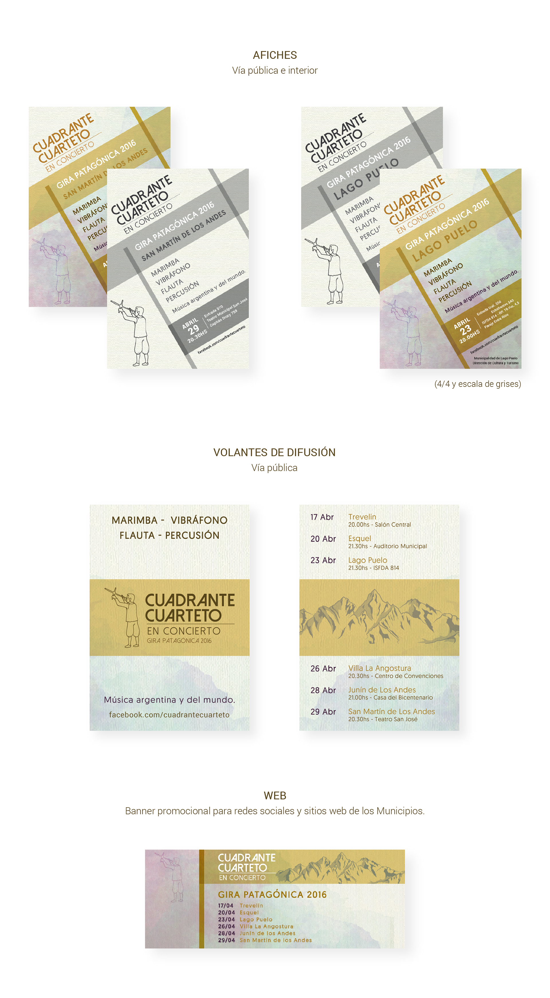Identidad para Gira Patagónica 2016 de Cuadrante Cuarteto - Grupo musical de viento y percusión.